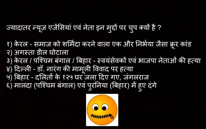 ज्यादातर न्यूज़ एजेंसियां एवं नेता इन मुद्दों पर चुप क्यों है ?